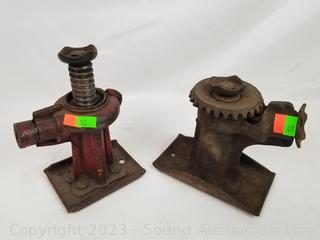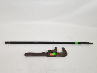 Lot #0152: 2 Vtg. Jacks, Battery & Pipe Wrench