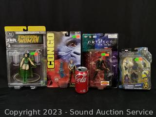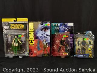 1995 Congo the Movie, 1999 Crimson, 2017 Marvel Black Panther, 2007 DC Tomorrow Woman. All sealed in original packaging. Some light bends in packaging.