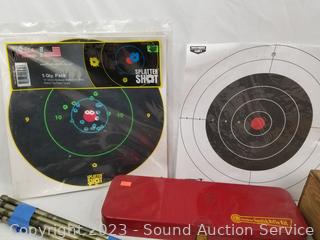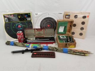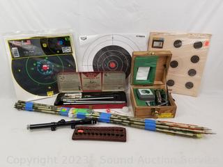 Lot #0163: Assorted Targets, Arrows, Scope, Gauge & Cleaning Kit