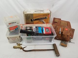 Lot #0162: Assorted Tools & Hardware, Leather Tool Bags