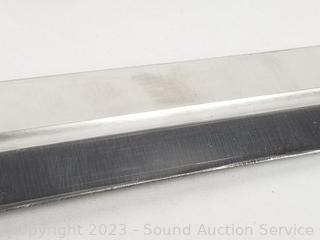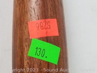 42" Long, 32" long blade. Made in Pakistan, don't see any major issues. Wood hand brass accents.