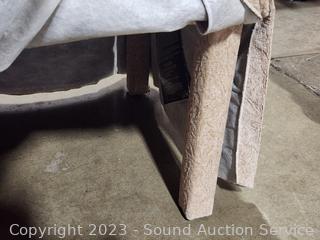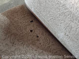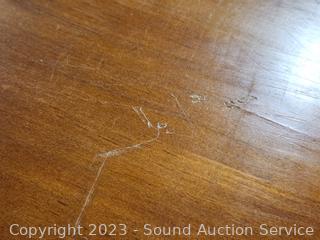Various scuffs, scratches in finish. of table, upholstery in chairs is in great condition. 30" H x 71" x 41" table.