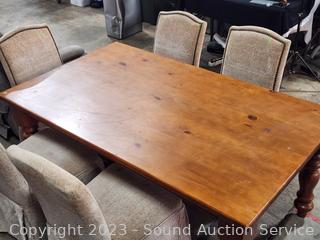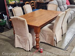 Lot #0002: Pine Dining Table w/6 Upholstered Chairs