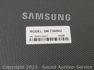 Has power, ready for initial setup. Model SM-T560NU. Does not come with C-port charging cable. Case has some wear from use, don't see any issues with tablet.