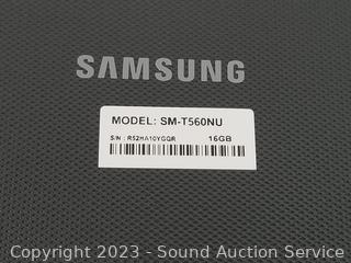 Has power, ready for initial setup. Model SM-T560NU. Does not come with C-port charging cable. Case has some wear from use, don't see any issues with tablet.
