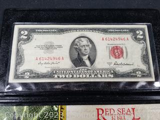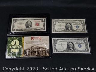 Lot #0183: 1950's $1 Silver Certificates & $2 Red Seal Note