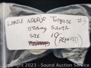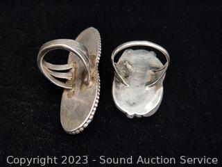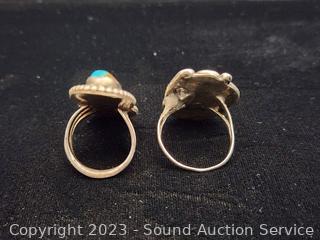 Lot #0191: 2 Vintage Native Silver & Turquoise Rings S:6.5 & 10
