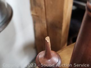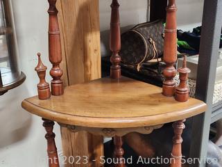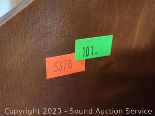 50" H x 17" to 24" W x 12" to 16.5" D. Some light wear to finish, discoloring, dings, etc. Overall good condition.