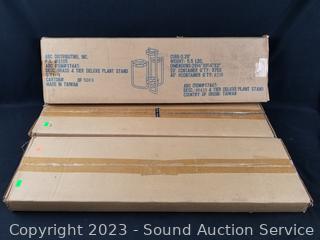 Lot #0090: 3 Unassembled Brass Finish 3-Tier Plant Stands