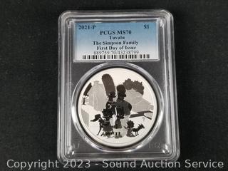 Lot #0232: Graded 2021-P Tuvalu "The Simpson Family" 1oz .9999 Fine Silver $1 Coin MS70