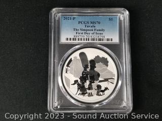 Lot #0220: Graded 2021-P Tuvalu "The Simpson Family" FDI 1oz .9999 Fine Silver $1 Coin MS70