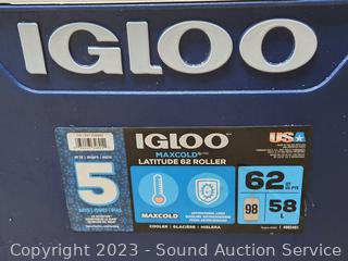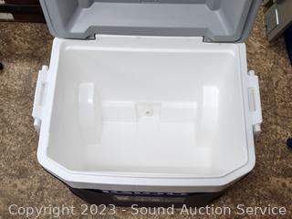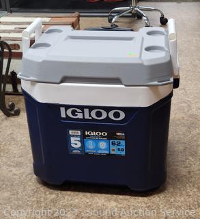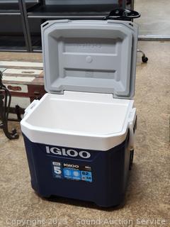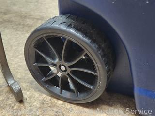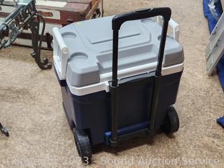 Telescopic handle. 20.5" H x 19" W x 15" D. Some cosmetic wear, scuffs.
