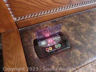 Base heats up to heat up a mattress. Believe solid cherry construction. Overall in great working condition. 16" to 36" H x 68" W x 80" long rails.