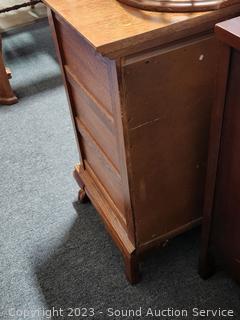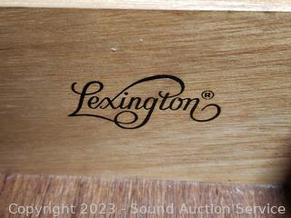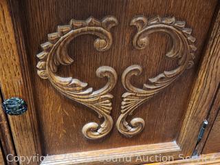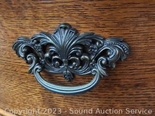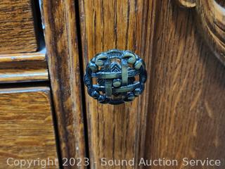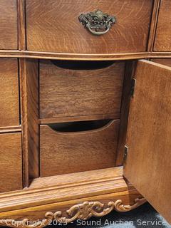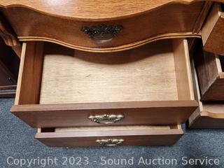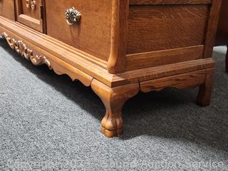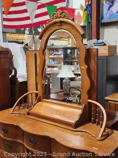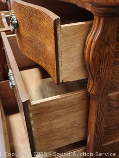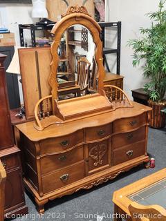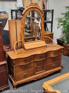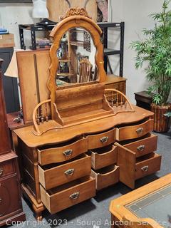 Lot #0013: Ornate Lexington Oak 9-Drawer 2pc Vanity Dresser