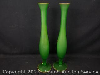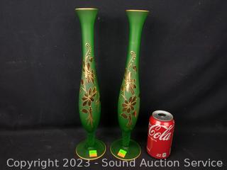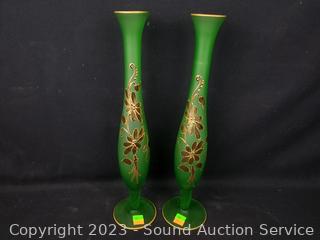 Lot #0108: Pair of Green Stain & Gold Painted Vases