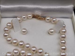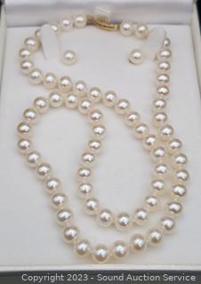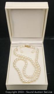 Lot #0188: Pearl Necklace & Earring Set w/14K Gold Clasp