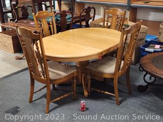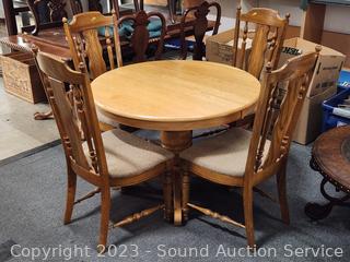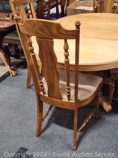 Lot #0002: Small Round Oak Dining Table w/2 Chairs