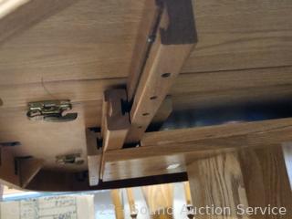 30" H x 42" Dia with (1) 18" leaf. See some minor scuffs, overall great condition.