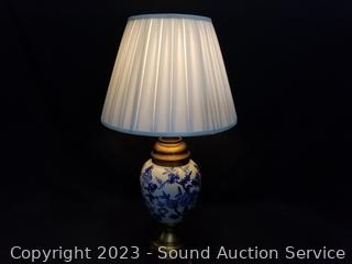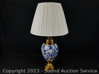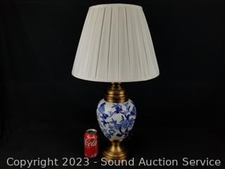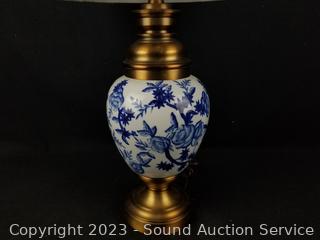 Lot #0103: White/Blue Porcelain Base 27" Table Lamp - Works