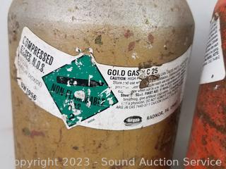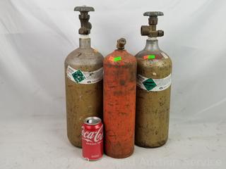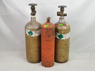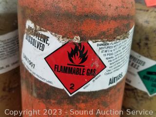 Unknown fullness, feel empty. 14" x 5" N.O.S. tanks, 13" x 3.75" Acetylene tank.