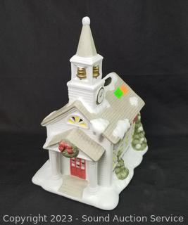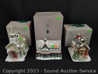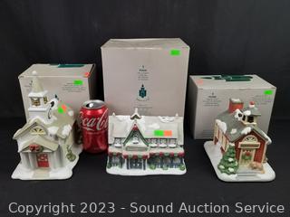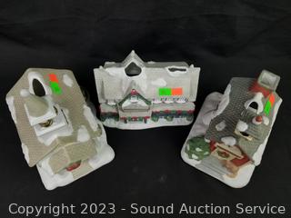 Lot #0127: 3 Partylite Porcelain Christmas Village Tealight Houses