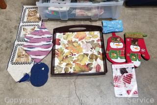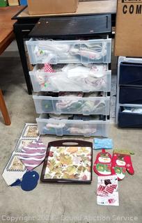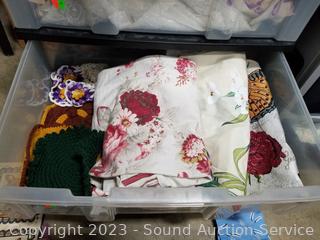 Placemats, tablecloths, potholders, napkins, etc. Refer to photos for more info. 32.5" H x 23.5" W x 16" D.