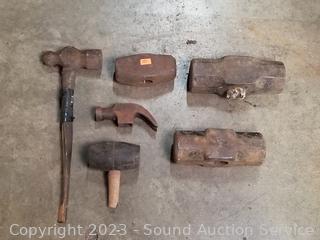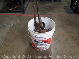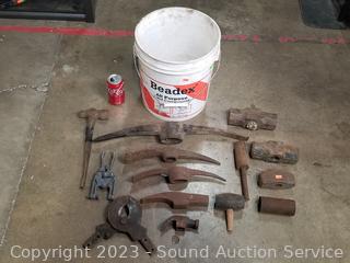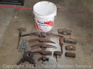 Lot #0212: 5 Gallon Bucket w/Mallet/Pickaxe/Hammer Heads