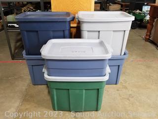Lot #0213: 6 Rubber Maid Totes w/Lids