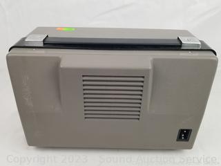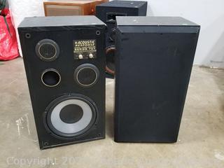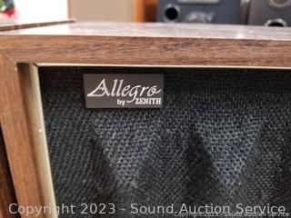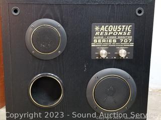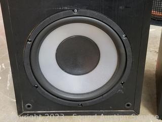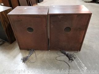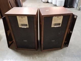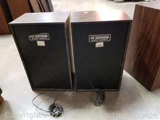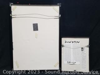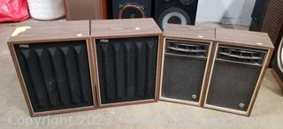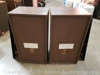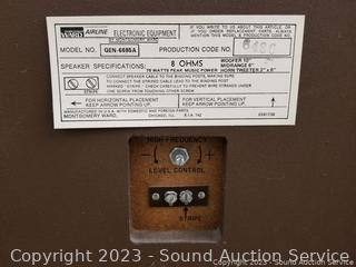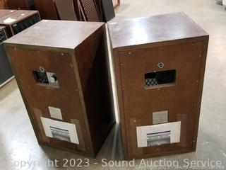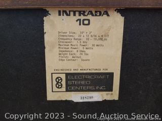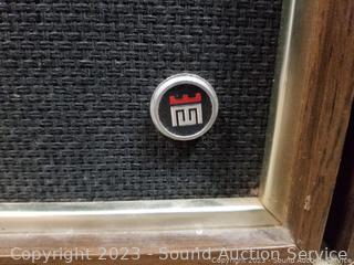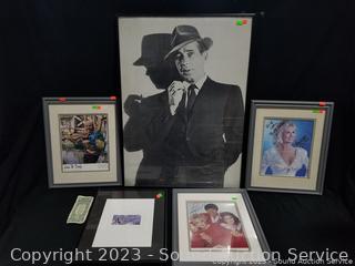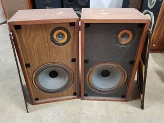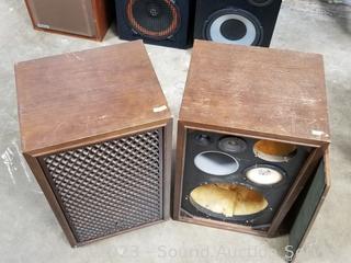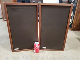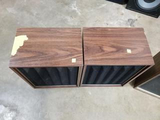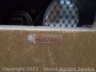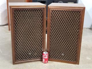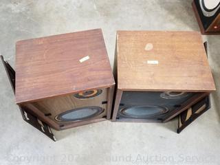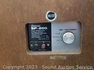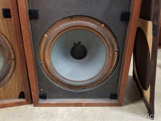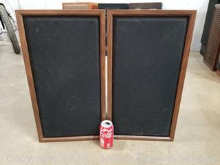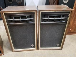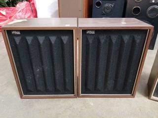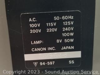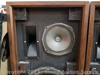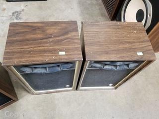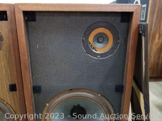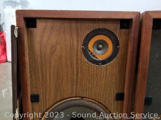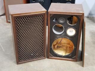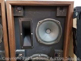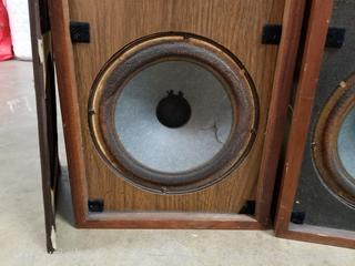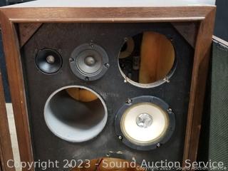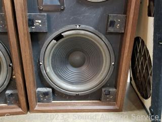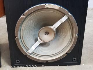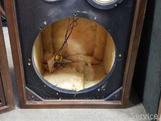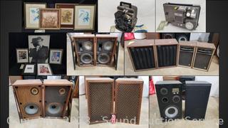 4pc Interior Accents Art - 14" x 14" to 13.75" x 16.75". 3 Autographed Photos & 2 Prints - Jennifer Wilson, Shoji, Louis W. Darby autographs, abstract print & Humphrey Bogart poster. 15" x 12" to 28" x 20". Bell & Howell No.346 Super 8 Autoload Movie Projector - Comes with instructions (has some damage), projector is in great cosmetic condition. Has power, motor does not engage in forward or reverse. Lamp works, motor runs. Canon Sine Projector S-400 - Untested, no power cord. In great cosmetic condition. 2 Vtg. Ward Airline GEN-6685A Speakers - One speaker has a hole in the surround, otherwise unknown condition. 24" H x 13" W x 10" D. 2 Vtg. Intrada 10 2-Way 30W Speakers - One speaker has a hole. One small speaker not producing sound. 22" H x 12.5" W x 9.5" D. Some wear to finish on cabinets. 4 Vintage Speakers - 2 Allegro by Zenith, untested, don't have compatible equipment to test. One has a large piece of missing finish, 18.5" H x 14.5" W x 9.5" D. 2 Air suspension speakers, work. 18" H x 11" W x 7.5" D. 2 Vintage Sansui SP-100 or 200 Speaker Cabinets - Cabinets only no speakers, grills are intact. Various scuffs, wear to finish. 26" H x 15" W x 12.5" D. Acoustic Response Series 707 3-Way Speakers - 2 Different subwoofer speakers. Various wear to cabinets. Large speakers work, couldn't tell if smaller speakers are working. 27" H x 15" W x 11" D. One does not have a grill.