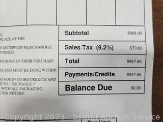 Comes with original purchase receipt from Furniture World for $799. Model 9MZ85-1/23179. In excellent working condition. Approx. 43" H x 36" W x 19" to seat. Very comfy and soft!