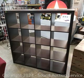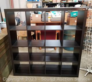 Lot #0029: Contemporary Dark Finish 16 Cubby Shelving Unit