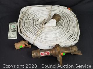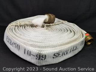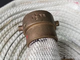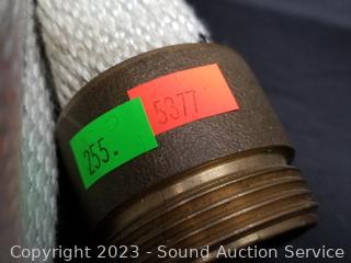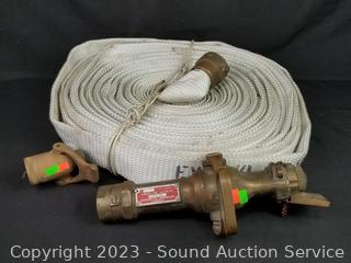 Unsure on length, 100ft? 1-1/4" nozzle ID, 2" hose ID.