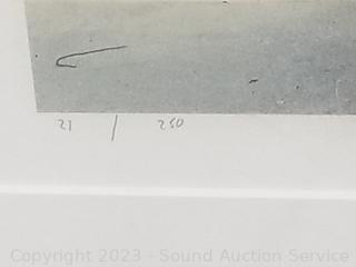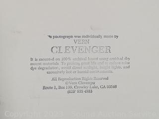 Photograph is by Vern Clevenger #21/250, 20" x 24". Framed, matted with glass. Artist information stamped on the back. Giclee is 23.5' x 36".