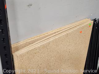72" H x 48" W x 24" D. Particle board shelves. Don't see any major issues. Unassembled, complete.