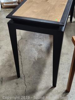 Lot #0081: Steel Black Base & Natural Wood Finish Sofa/Hall Table