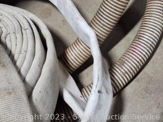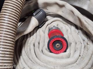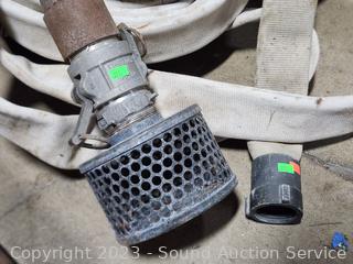 Unsure on length of the hoses, 50-100ft? Pump is untested. Various weathering, wear from use. Pump Model W1-145, Engine Model EY15D 3.5HP.