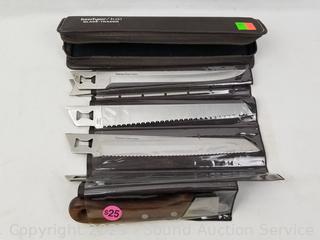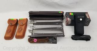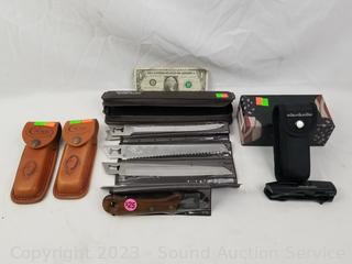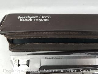 Wilson & Miller 10-Piece Multi-Tool & Tactical blade set (appears unused), Kershaw/Kai has 5 different, interchangeable blades, don't see any issues. 2 Case 5.5" leather sheathes.
