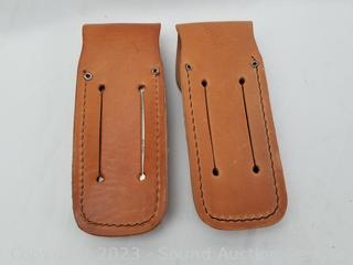 Lot #0147: Wilson & Miller & Kershaw/Kai Multi-Tool/Blade Knives & 2 Case Leather Sheathes