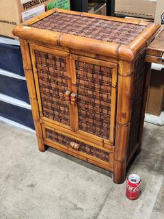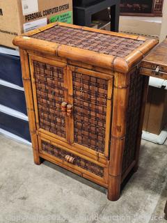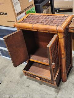 Lot #0055: Woven Bamboo Single Drawer Cabinet