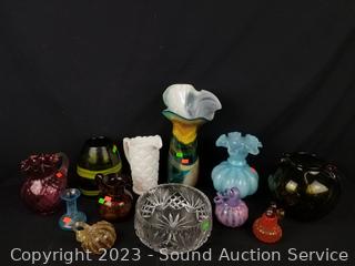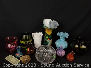 Lot #0107: 12pc Art Glass, Crystal & Colorful Glassware