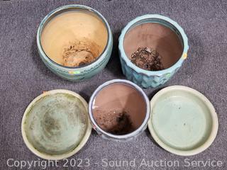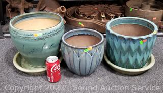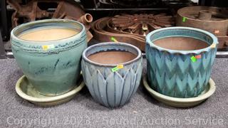 Lot #0073: 3 Glazed Pottery Planter Pots