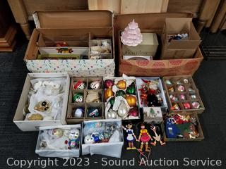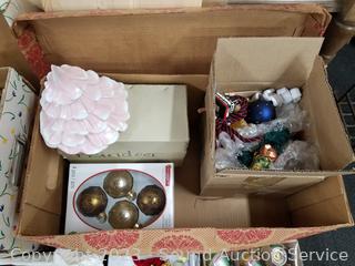 Lot #0039: 4 Boxes of Assorted Christmas Decor Ornaments & Other Decor