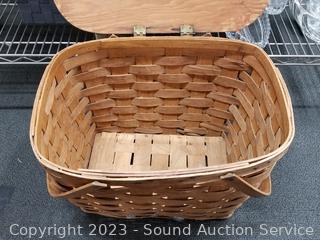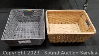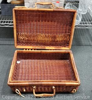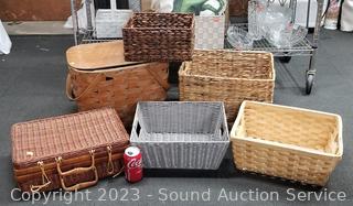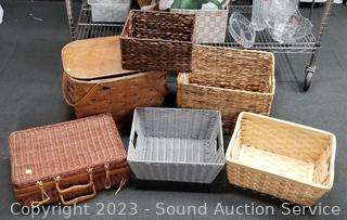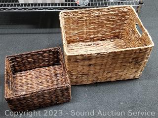 One of the lidded is missing part of the latch. Approx. 5.5" to 12.5" H x 10" to 16" L/W.