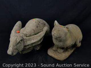 Lot #0110: Concrete Bunny & Cat Statuaries