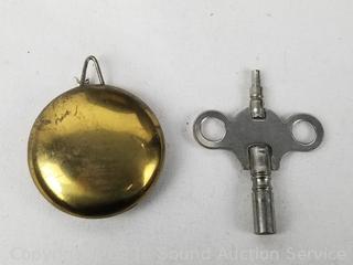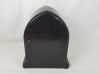 Comes with key & pendulum. Runs for a few minutes then stops. 11" H x 8.75" W x 5.25" D.