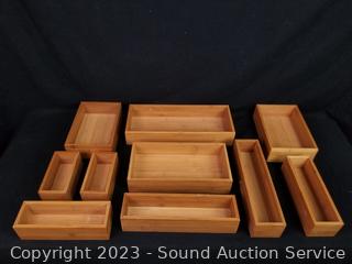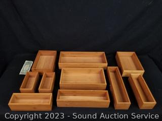 Lot #0242: 10pc Bamboo Drawer Organizer Boxes Set