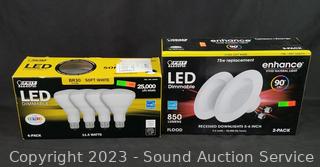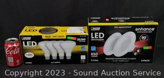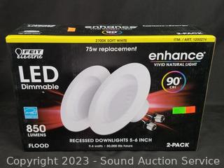 Lot #0252: 3 Feit LED Dimmable Lightbulbs & 2 Feit 5-6" Recessed Downlights