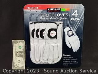 Lot #0298: 4pk Kirkland Premium Cabretta Leather Golf Gloves S:M