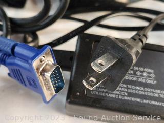 Has power. Comes with power cord, VGA cable & adapter. VGA & DVI ports.