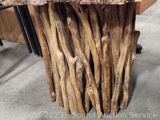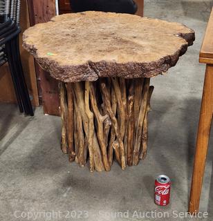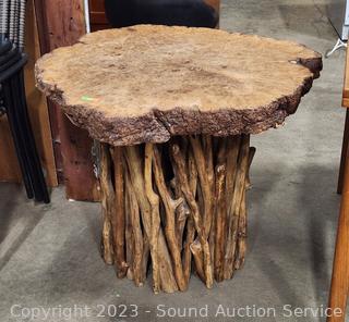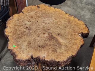 Lot #0015: Live Edge Burl Top Handcrafted Primitive Table